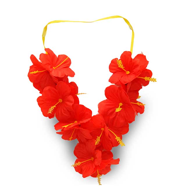 Eine Mala, auch Girlande genannt, ist eine Reihe dekorativer Blumen und Perlen, die als Opfergaben für Götzen und zur Dekoration verwendet werden. Diese handgefertigte Mala besteht aus (künstlichen) Hibiskusblüten, die Gesundheit, Schönheit, Ruhm, Zartheit, Stärke, Unsterblichkeit und Respekt symbolisieren.