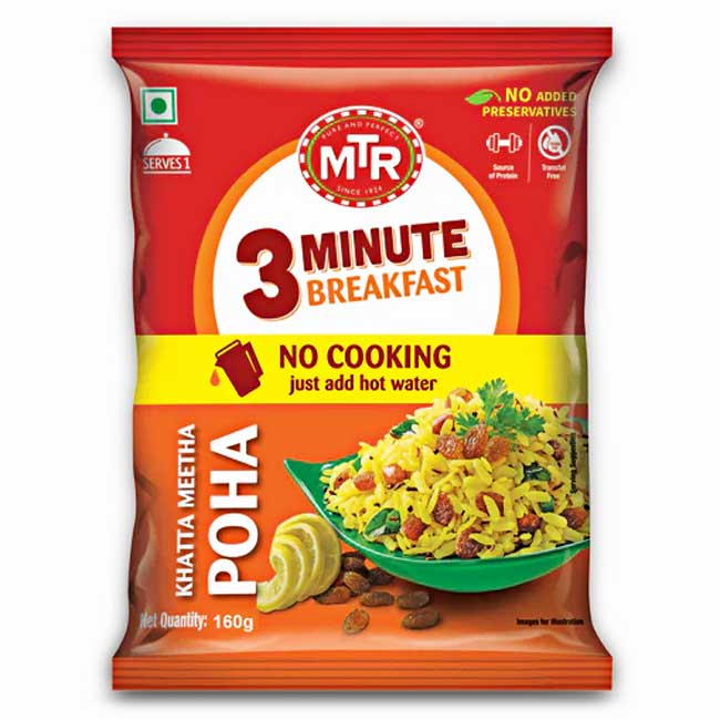 Enjoy a delicious Indian-style breakfast in just 3 minutes with MTR Instant Khatta Meetha Poha. This ready-to-eat meal combines flattened rice flakes with peanuts, onions, and a unique sweet-sour spice blend. Simply add hot water, wait three minutes, and enjoy a satisfying dish anytime. Perfect for busy mornings, quick office snacks, or travel. With its balanced flavor and easy prep, this instant Poha brings the taste of traditional Indian cuisine straight to your bowl — no cooking required.