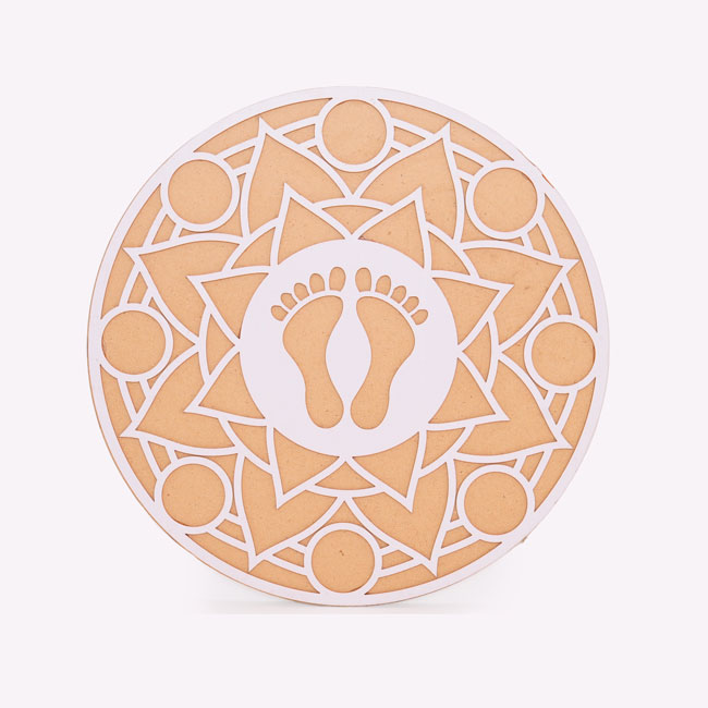 Bring divine blessings home with the Charan Paduka MDF Rangoli Stencil, 30cm. Representing the sacred footprints of deities, this large stencil is perfect for Diwali, Navratri, wedding entrances, and puja décor.
