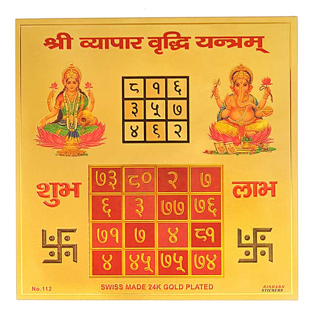Vyapar Vridhdhi means success in business or trade. Printed on golden paper and, worhshipping Vyapar Vriddhi Yantram is belived to bring good fortune and desired success at work-place.